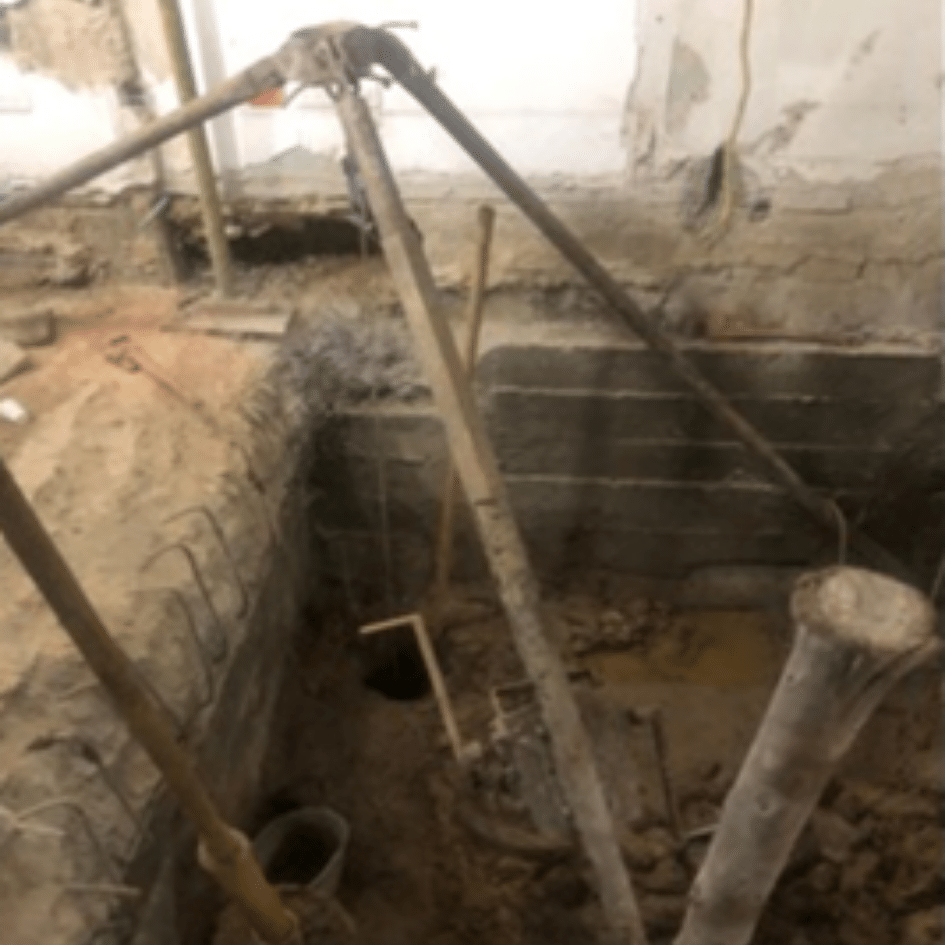 El pilotaje tipo manual es una técnica de excavación a grandes profundidades que no utiliza ningún tipo de máquina con motor, por el contrario, para esta labor se utiliza un equipo conocido como malacate, trípode o en muchos de los casos como equipo para pilotaje manual, este es operado por dos o tres personas y llaves.